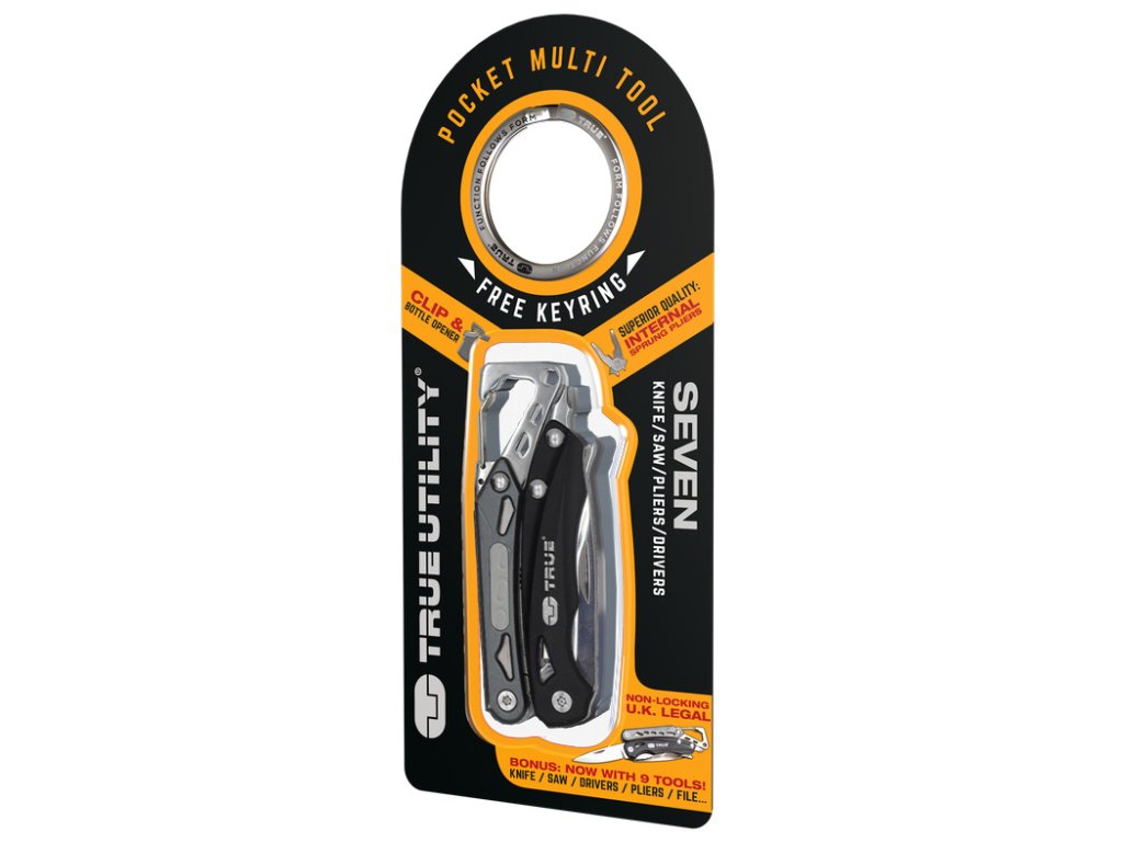 Kompaktní multifunkční nářadí True Utility Seven se sedmi základními funkcemi, včetně nože.