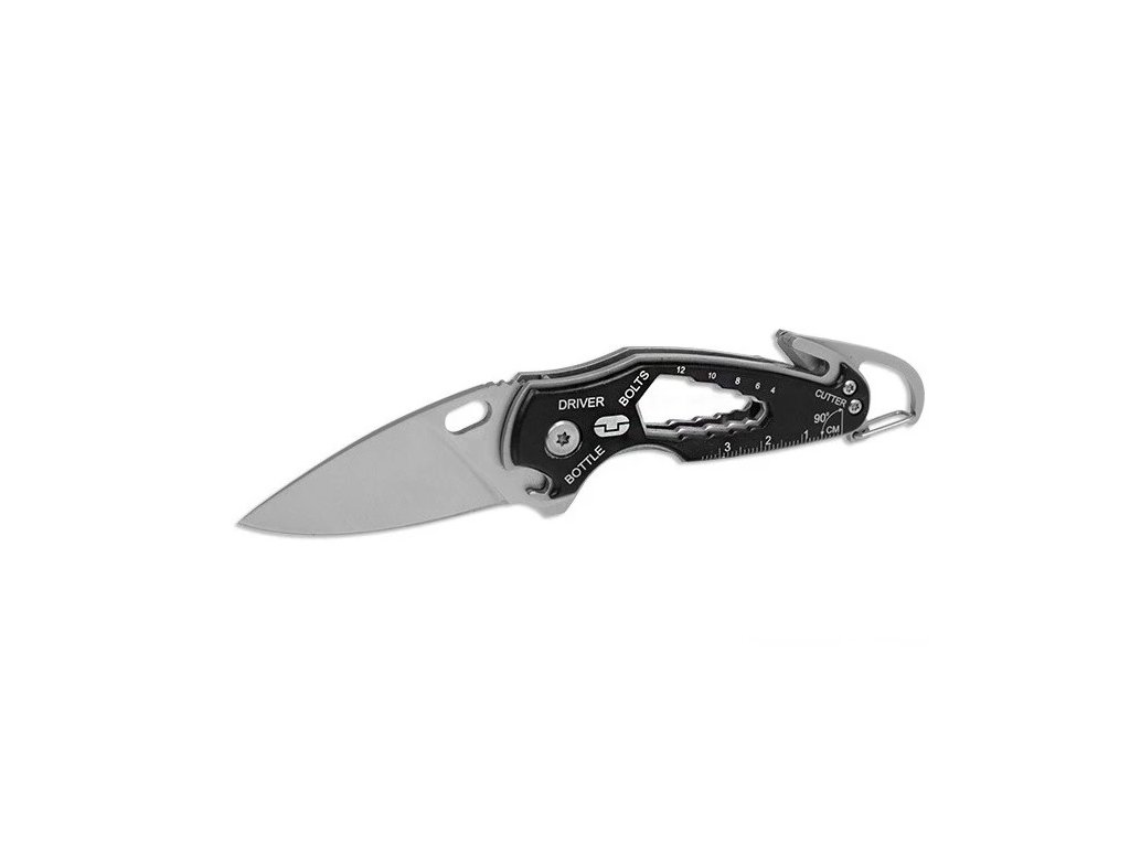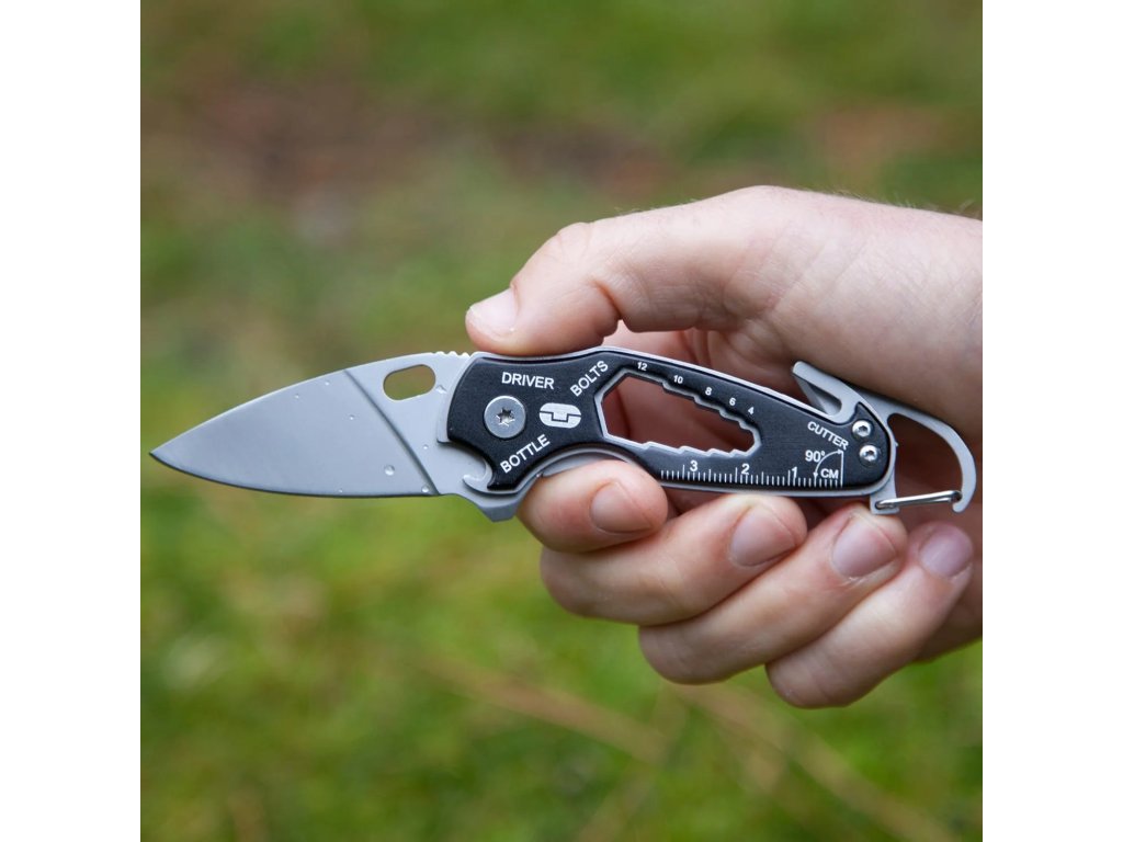 Součástí tohoto multifunkčního setu je bezpečnostní zavírací zámek nože a poutko pro připevnění na kroužek od klíčů nebo na tkaničku na krk.