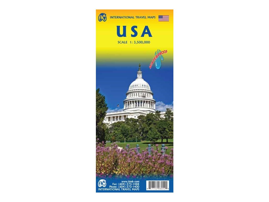 Přehledová mapa Spojených států amerických (USA) v měřítku 1:3,5 mil. poskytuje základní přehled a orientaci v této zemi. Jsou zde zobrazeny pouze hlavní silnice, dálnice, města a turistické atrakce a základní geografický obsah.