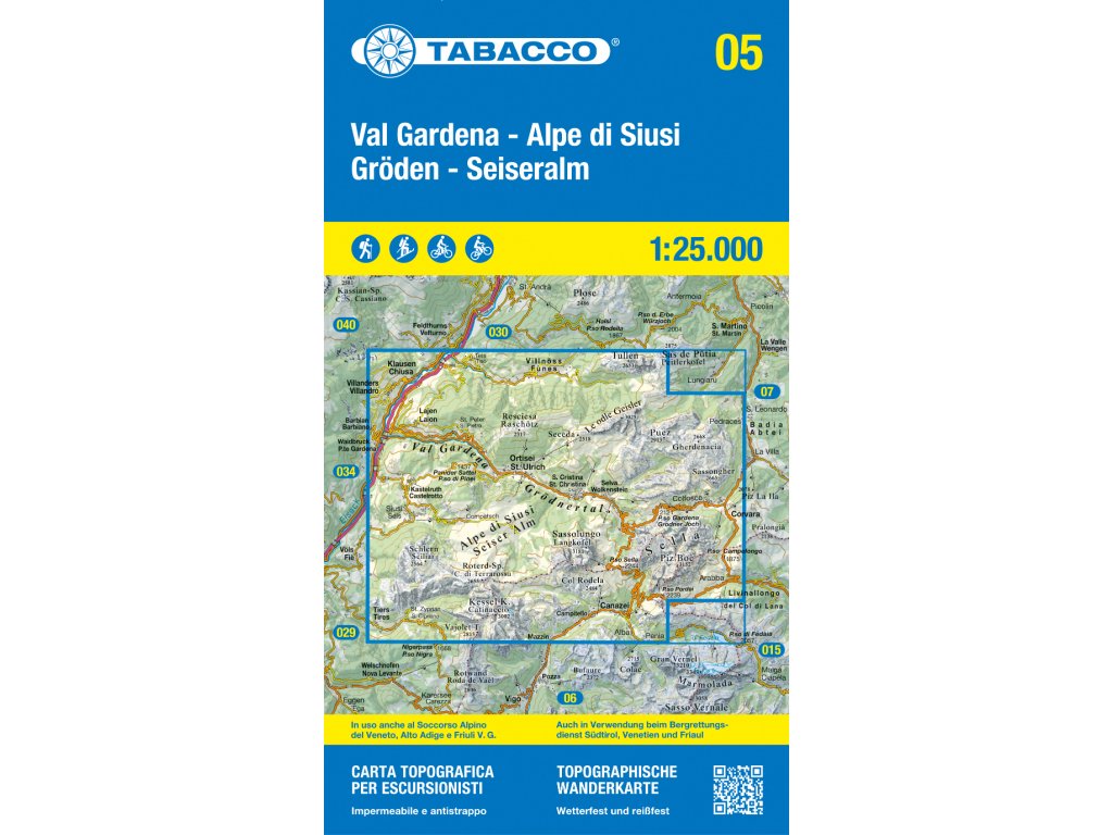 Kvalitní topografická mapa oblasti: Val Gardena - Alpe di Siusi / Gröden - Seiseralm. Obsahuje značené turistické a skitouringové trasy, grid UTM. Podpora GPS.
