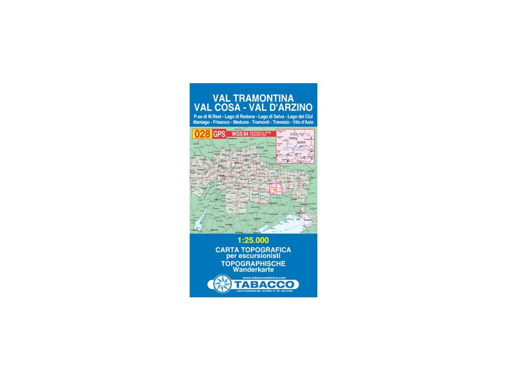 Kvalitní topografická mapa oblasti: Val Tramontina - Val Cosa - Val d´Arzino. Obsahuje značené turistické a skitouringové trasy, grid UTM. Podpora GPS.