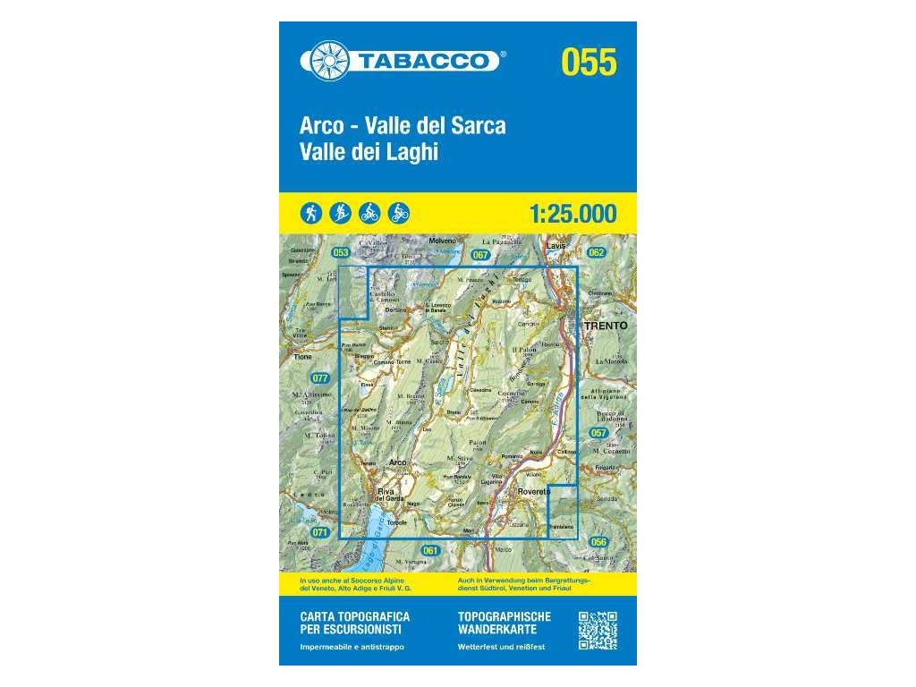 Kvalitní turistická mapa oblasti Valle del Sarca, Arco, Riva del Gardal v měřítku 1:25 000. Obsahuje značené turistické, cykloturistické (včetně tras pro MTB) a skitouringové trasy, grid UTM. Podpora GPS.