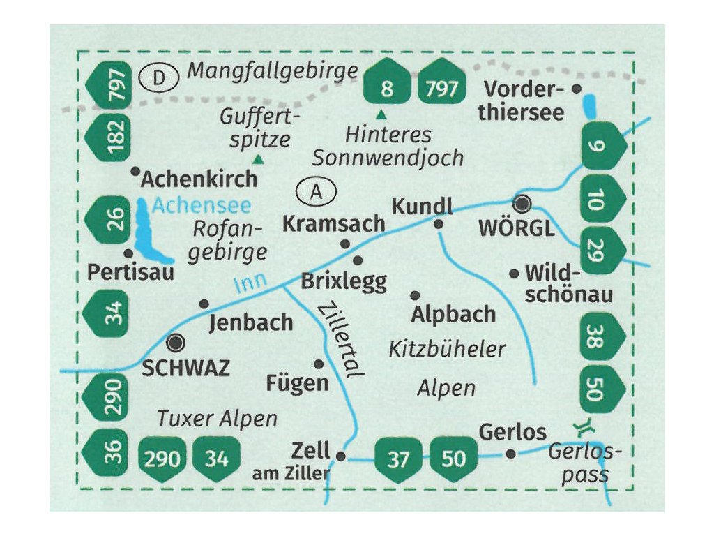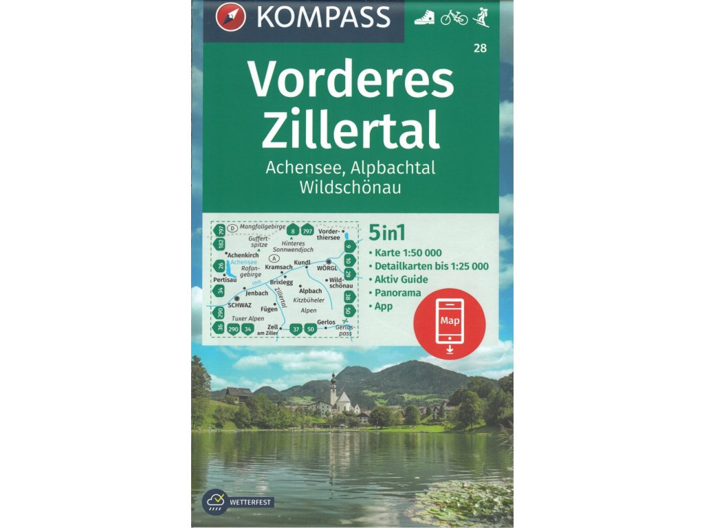 Mapa oblasti Vorderes Zillertal - Alpach - Rofan - Wildschönau - turistická mapa od vydavatelství Kompass obsahuje aktuální značené turistické trasy, doporučené cykloturistické trasy a kompletní informace o turistických zajímavostech v okolí. A to vše na kvalitním topografickém mapovém podkladu. Podpora GPS je samozřejmostí.